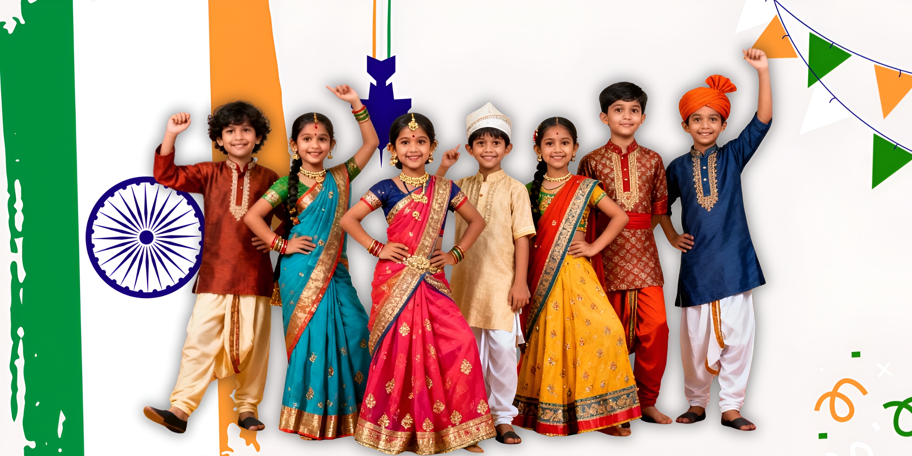 Traditional Marathi dress for boys with dhoti, kurta, and pheta turban.